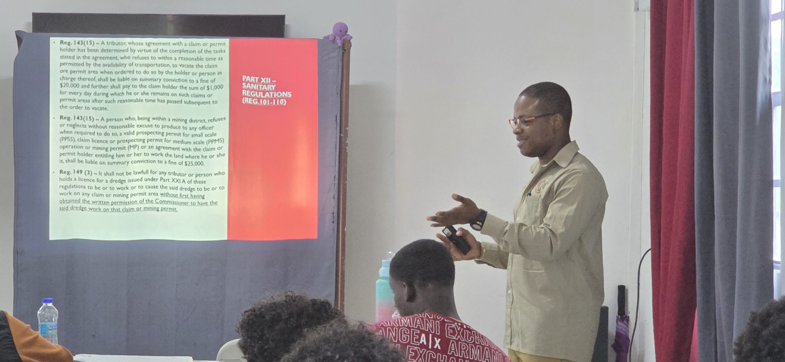 Led by Instructors Garvin Douglas and Pretima Lall, supported by Interns Ameera Dindayal and Maquica Bart from the University of Guyana, the workshop aimed to strengthen miners’ technical capacity and promote safe, legal, and environmentally responsible mining practices in keeping with Guyana’s Low Carbon Development Strategy (LCDS).