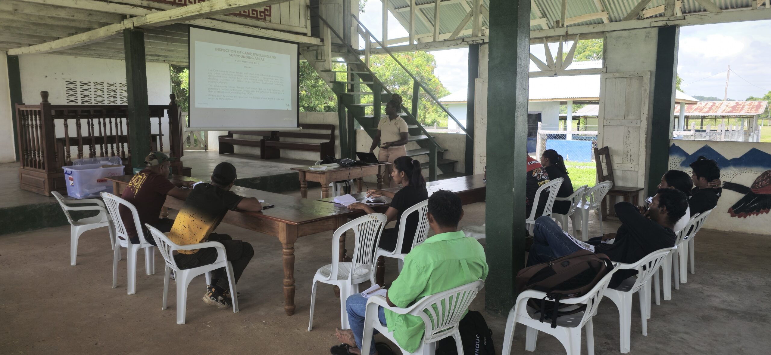 From April 23 to May 1, 2025, the Guyana Mining School and Training Centre Inc. (GMSTCI) conducted a nine-day Community Mines Ranger Training at the Aishalton Community Center, located in the Rupununi Mining District #6. The training, led by Instructors Garvin Douglas and Omella James, with support from Intern Daniel Kansinally, brought together 13 participants, including 4 females and 9 males, representing the growing interest in sustainable and well-regulated mining practices in Region 9.